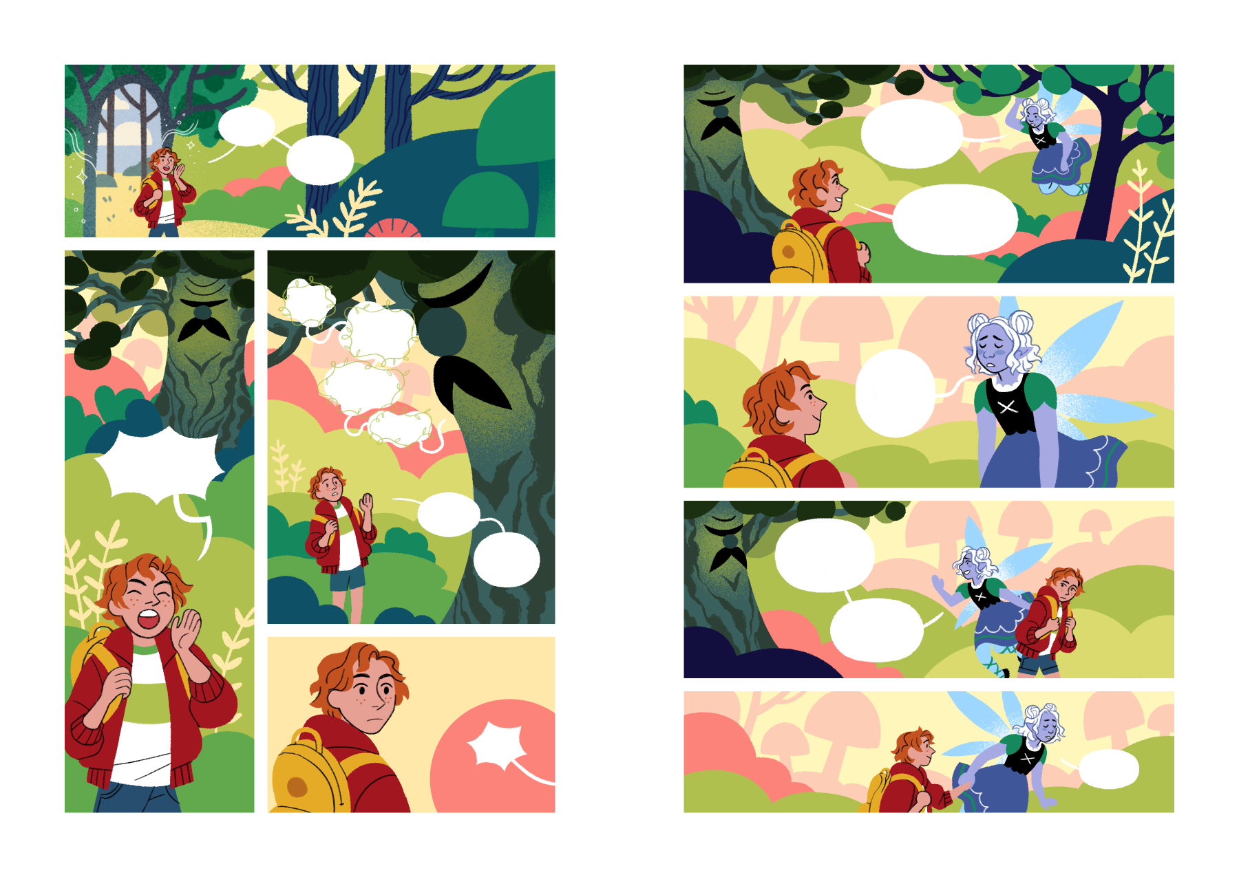 Concepts and visual development for a middle grade graphic novel pitch, about a boy who keeps an illustrated journal of his adventures in the Fairy Realm.